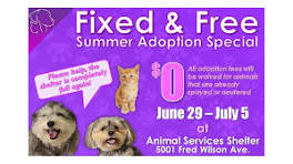 Free pet adoptions available through July 5 "We have so many fabulous pets here, adorable dogs and cats. You've got to come out, find the dog or cat that you connect with, that you really love ...